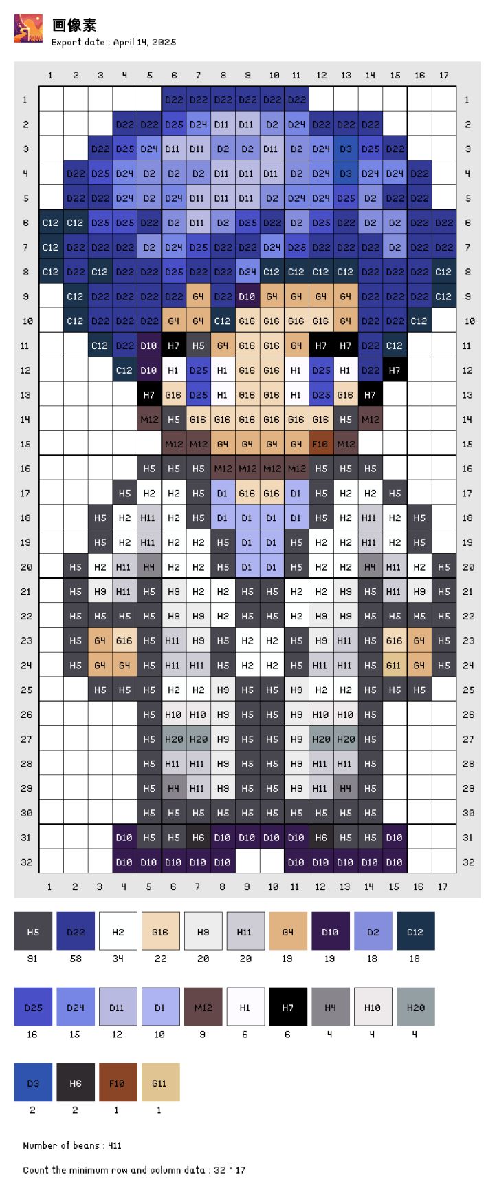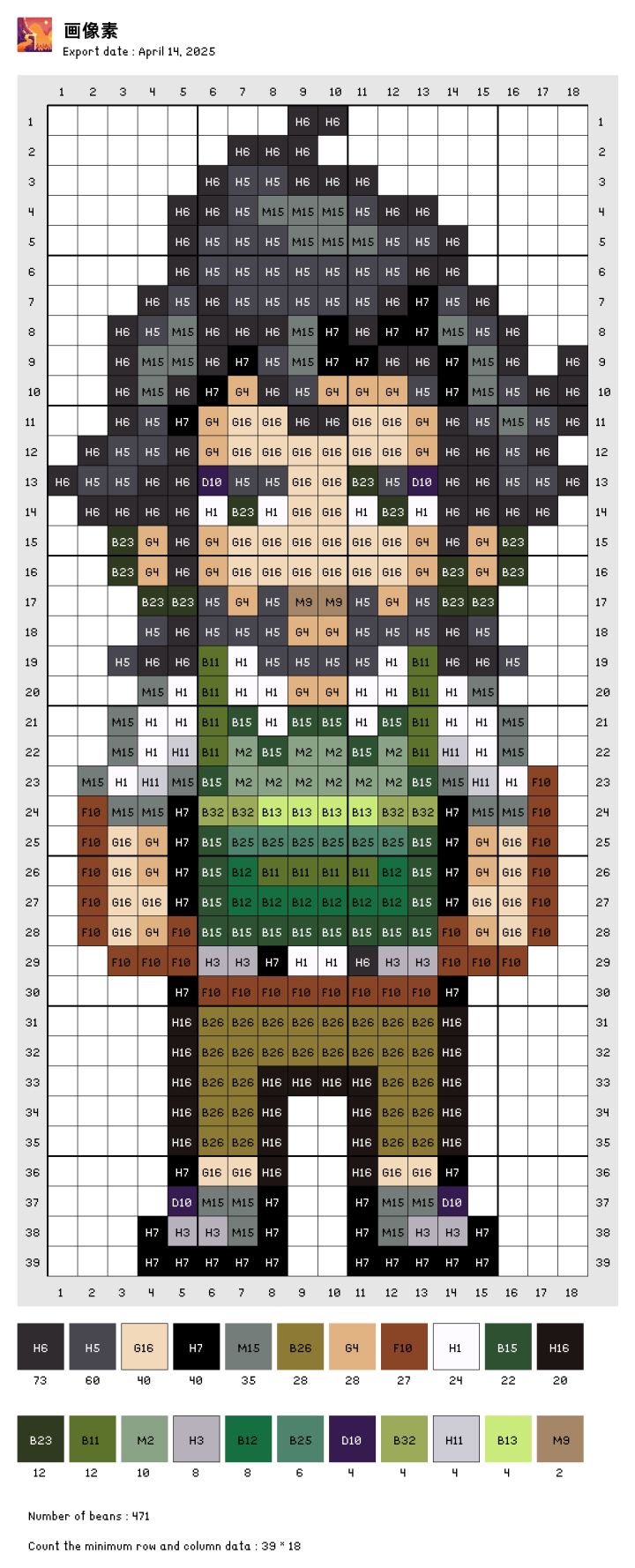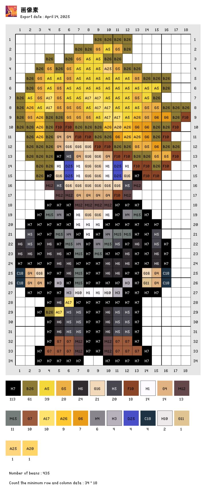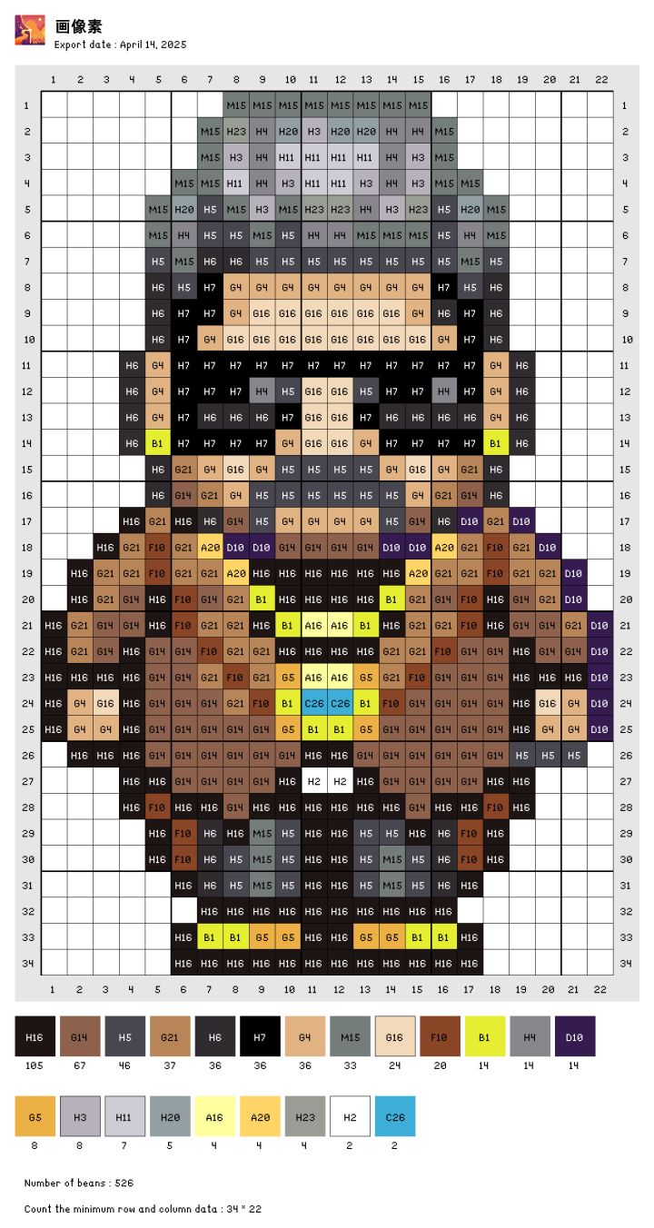 自己转的图,色号是拼豆的色号,有点误差。自己可以灵活更改。图是存的交流群里大佬发的素材包里的。#奶牛镇的小时光 #拼豆 #发现好游戏