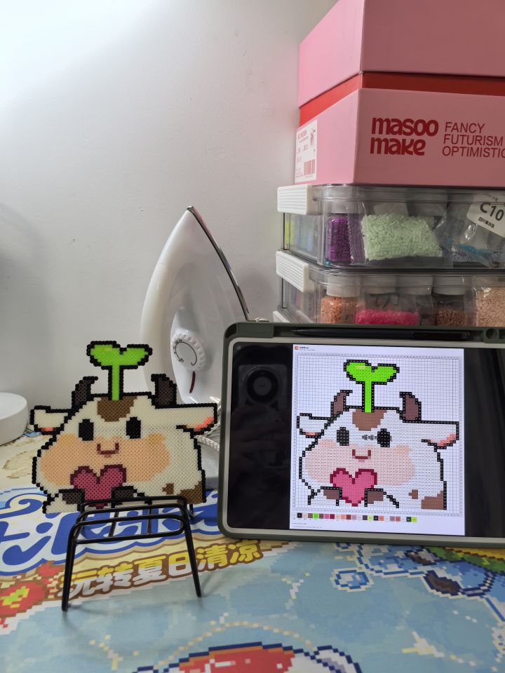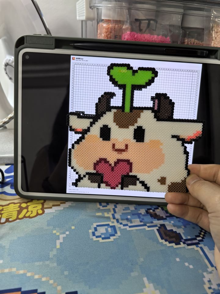 之前做的那个是刚入坑的时候做的,做的太烂了。今天重新做一个,等下周一起寄给球球。最近工作太忙了,虽然也没忙出啥成果,但是就是感觉好忙#奶牛镇的小时光 #TapTap发现好游戏 #发现好游戏 #模拟经营 #拼豆