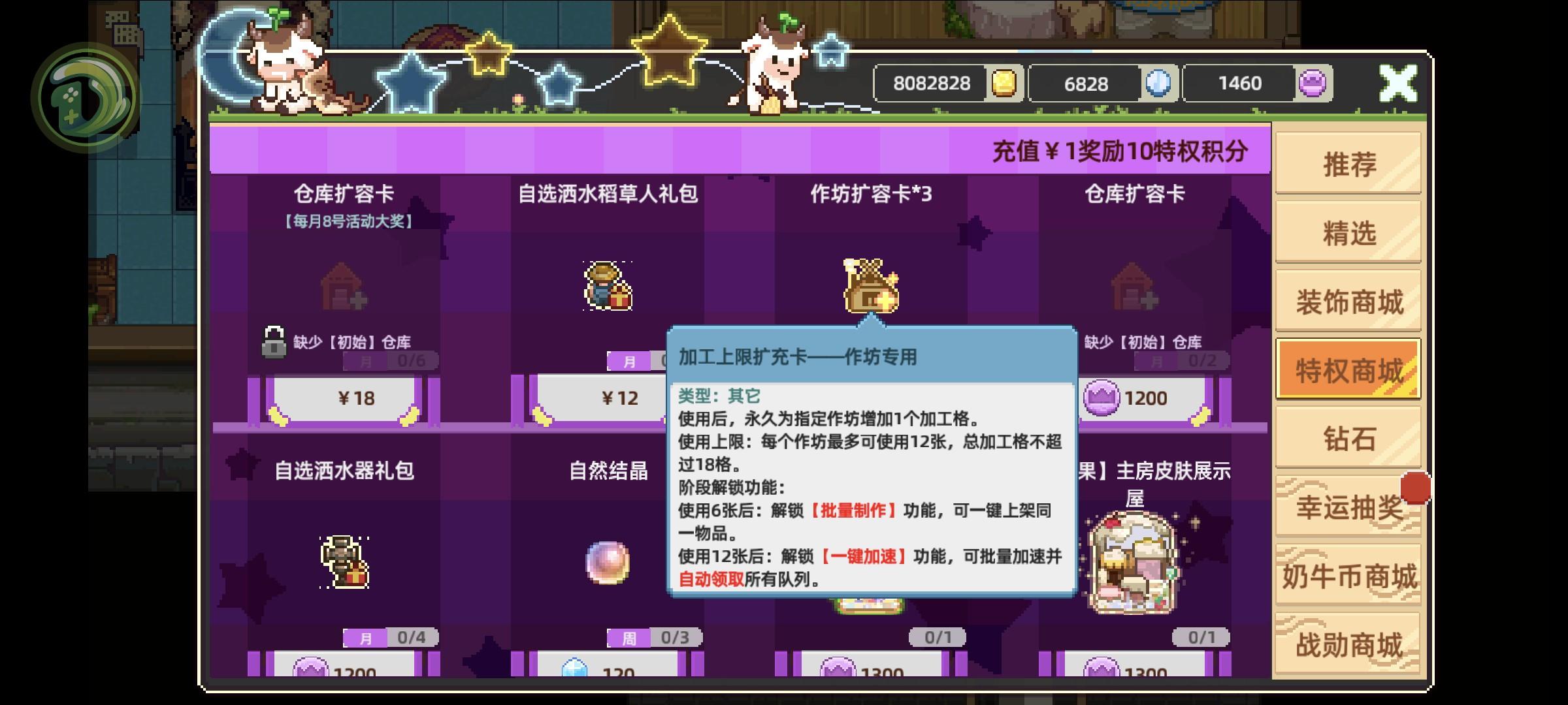 本来以为终于出个方便点的优化了,结果还要12张扩容卡,一个工坊12张,一张12rmb😅请问一键加速功能在工坊开六格就解锁、让玩家玩的舒服点能怎样?难道玩家就不用花加速卡时间花材料吗?本来以为打赢复活赛能开香槟了,结果圈钱的礼包活动一个接一个,让你修bug就缺人手了你不让玩家玩得舒服,出再多礼包活动也没用,膈应老玩家也留不住新玩家