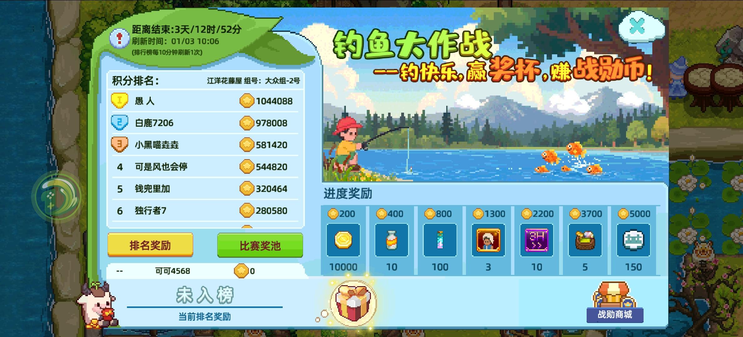 活动上线3分钟,第一就有30w了我说的独角仙掉率怎么那么低,北密林那一片树我叠加buff也就点了两个,合着是想128做活动卖我#钓鱼大作战 #奶牛镇的小时光