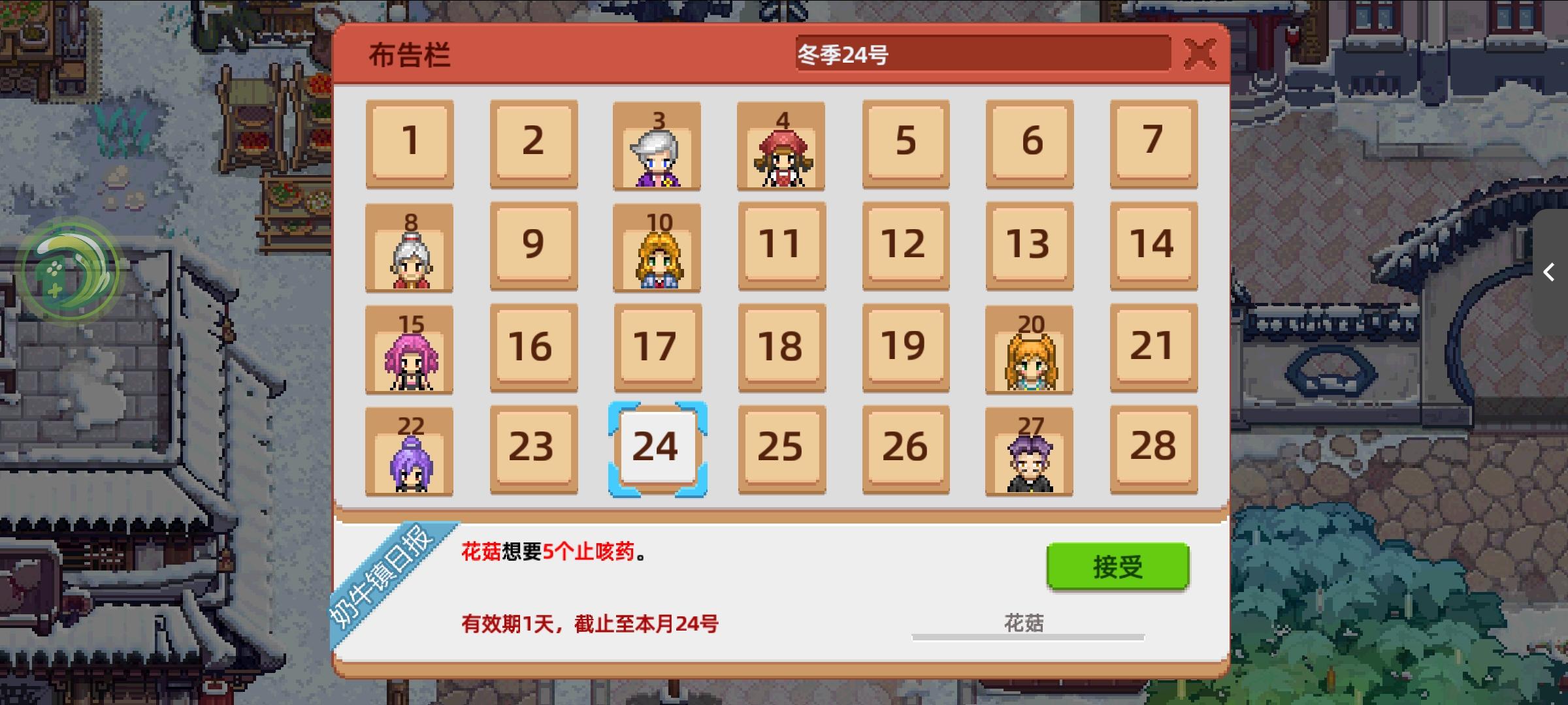 友友们,你们是不是也被卡在了小镇布告栏上面?我是第三年冬天才看到的这个第二个发布的任务(这个是很难刷到的)我看别人都是用好长时间才碰到,所以大家一定要细心看看这个布告栏记得还有要建一个中药坊啊#奶牛镇的小时光 #游戏日常