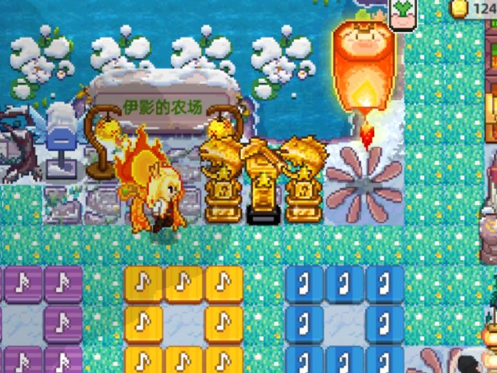 饵卡齐开河边立,满园金辉映雪花。#奶牛镇的小时光 #游戏日常