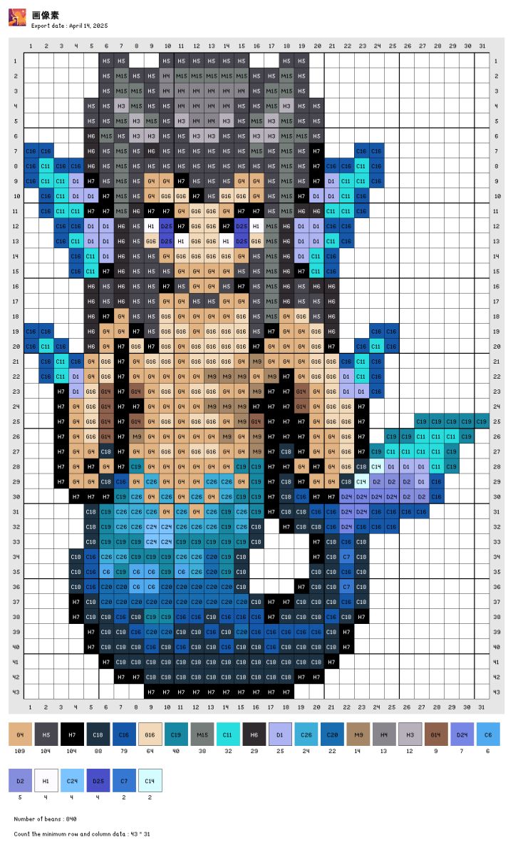 自己转的图,色号是拼豆的色号,有点误差。自己可以灵活更改。图是存的交流群里大佬发的素材包里的,感谢。封面来自🍠球球#奶牛镇的小时光