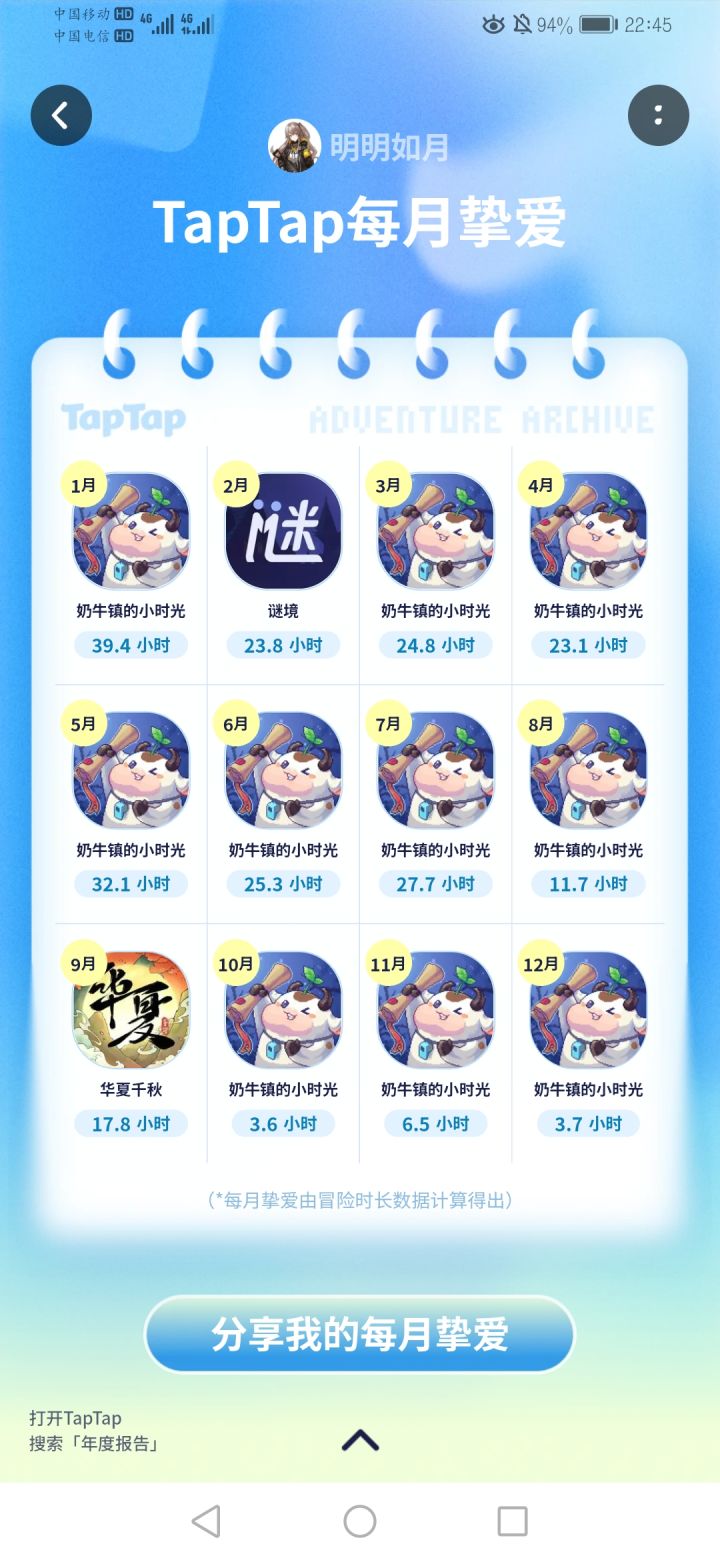分享一下我的游戏年度报告,这一年就折进奶牛镇了😎