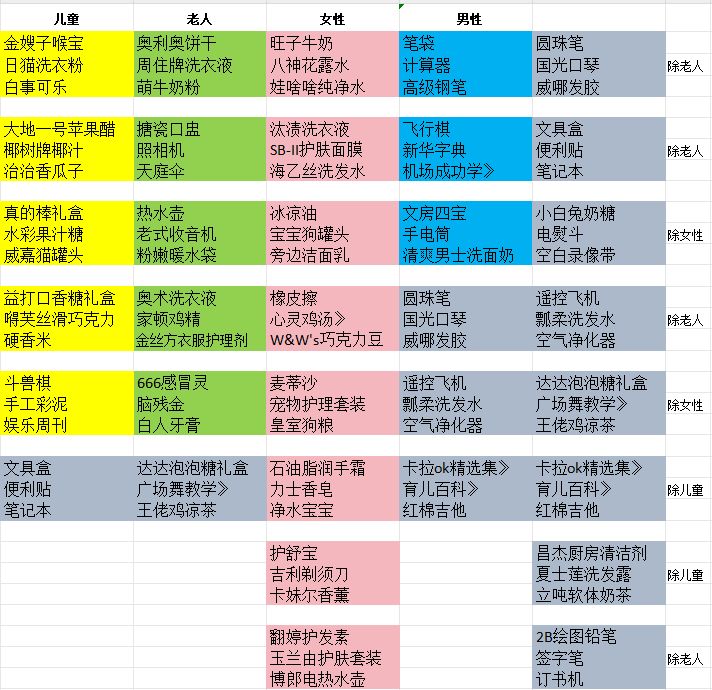 按照儿童、老人、女性、男性喜好度进行分类的利润组合,绝超适合和我一样肝对应人群主题楼层的小伙伴。 剩余商品要么没有三搭组合,要么组合被拆分,有部分商品我还没有获得,全图鉴如果有利润+10组合会出更新版本。 右侧灰色组合,备注:除XX代表除了该类人群楼层其他三类随意放置。 目前我其他楼层基本遵循利润从高到低原则进行匹配,利润低的产品不进行设置。#怪奇小店 #攻略