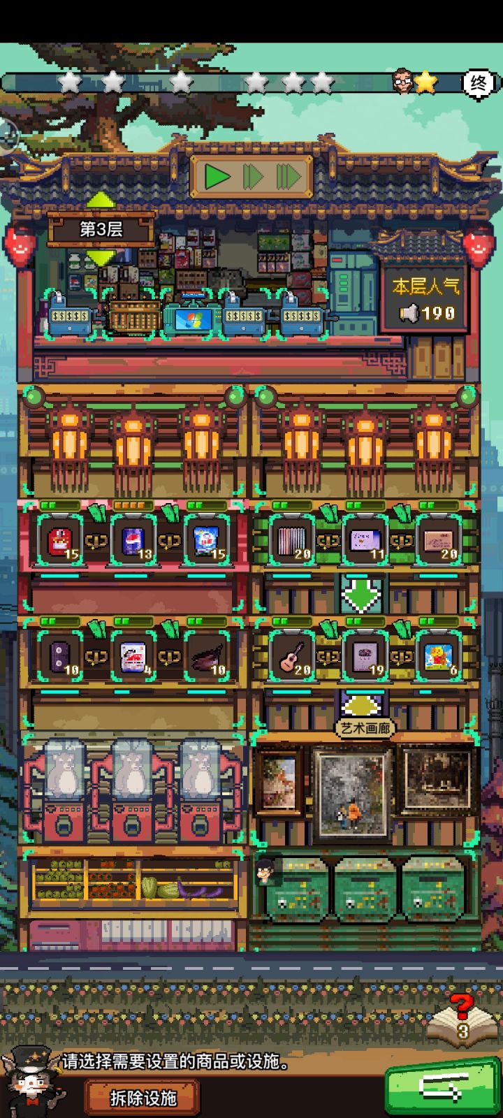 简直就是作弊神器!当你拿下驴牌的代理权,库存拉满!目前最喜欢的楼层配置是:一楼【高档卖场/智能卖场/专卖店】(1-4层只摆一层货,四选一,不然会分流,不信再试试)蔬菜店(人气↑、铜钱↑)+珍宠屋(本层女性设施↑)涂鸦墙(周围人气↑)+艺术廊(人气↑、铜钱↑)娃娃机/ktv(铜钱↑/人气↑)+萌宠屋(周围喜爱度↑)名宠屋(周围售价↑,喜爱度优于喜爱比例)+广告货架a(利润↑上驴牌!)娃