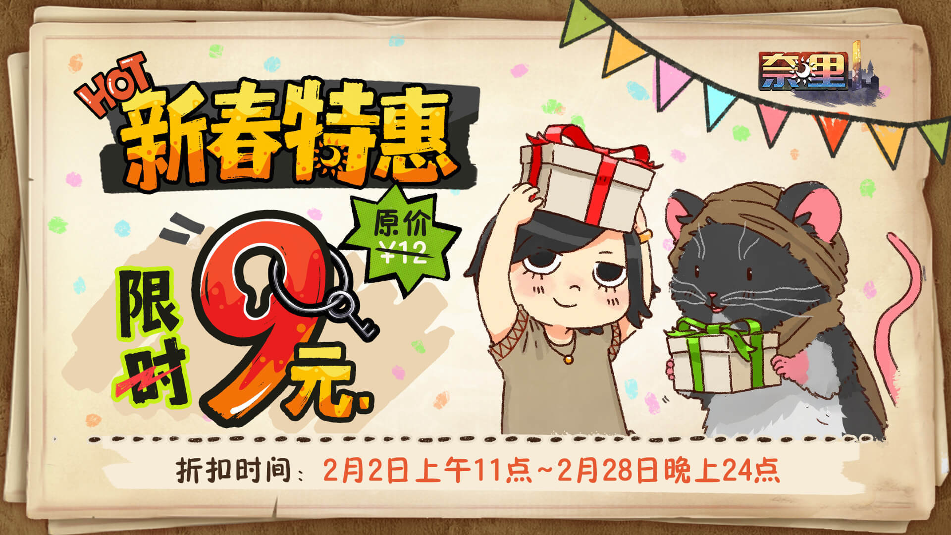 福启新岁,烟花点亮希林城的夜空,把旧年的烦恼统统驱散~大家都沉浸在团圆年味里,亲爱的居民们怎能缺席!《奈里》新年特惠暖心开启!活动期间,9元就能拿下完整手游,快来希林城与动物伙伴们一起解谜旅程,用一场奇幻冒险开启崭新一年吧!游戏为Steam原版移植,序章免费畅玩,剩余章节一次性买断。可支撑5~10小时游玩的丰富内容,20个惊喜成就待您解锁!➤折扣信息♦ 折扣价 :9元 (原价12元)♦