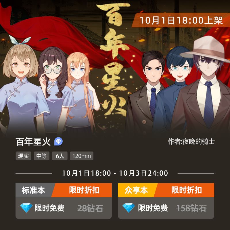 山河锦绣,国泰民安。百年星火,代代传承。 江山永固,日月长恒。百年星火,业已燎原。 《百年星火》 作者:夜晚的骑士 题材:现实 难度:中等 人数:6人 时长:120min 【故事简介】1933年的冬天格外严寒,华夏大地面临内忧外患,外有日本不断加紧侵略,内有国民政府对共产党和抗日分子的疯狂抓捕,人民生活水深火热。 来C城巡视的国民党特务机构高官魏力参加了H大学“百年诗歌社”的诗歌交流大会。然而诗歌