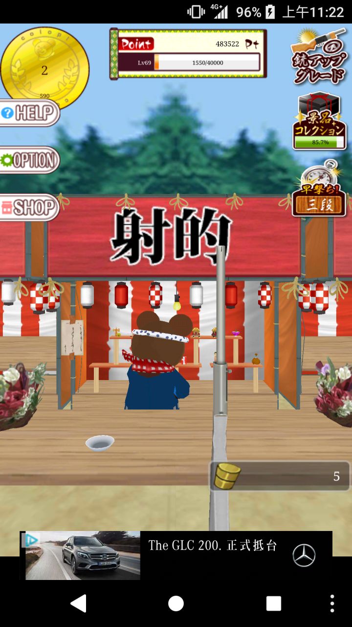 首先这是一款白猫公司コロプラ所做的杀时间的小品游戏是的,介绍一下介面吧 很简单的中间那把长长的是枪 (废言——————子弹数:右下方,平时最多五枚,但如果有拿到特别道具时,打倒多一点目标的话,子弹数会增加金币数:左上方,平时靠时间回恢,最多三枚打倒突然出现的魔王或是过了「早撃ち」就会多送几枚ponit:中间上方,累积点数,可以到商店升级枪和子弹经验:中间上方,嗯...意义不明,不