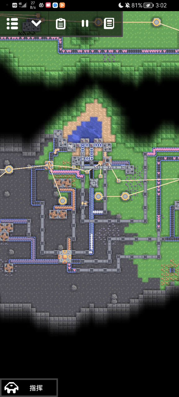 混带这种问题还是得改;这么大的合金蓝图原料不够,占空间,有点浪费;有了激光钻头最好升级一下你的气动;看出来你有几个蓝图但不多,自己去找一下蓝图,优化一下工厂结构;一些布线的小问题你玩久之后大概会有所改观,所以加油;有终代核心了怎么不用仓库扩展一下核心;去设置-图形里打开“显示建筑状态”,游戏体验更佳