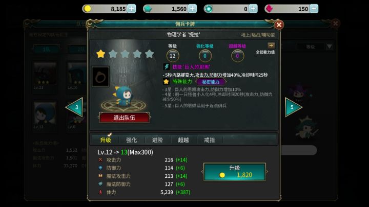 目前+1路娜(主角)+23圣骑士艾乐娜(四星)+0爆裂化身“拉比嗯”(一星)+0考古学家“邹伊”(四星)其中邹伊是白板英雄,用来增加材料和宝箱掉率的,也就是说,基本等于1主角+2佣兵在打,当前已至500层,不用点击屏幕,发帖做个记录,每100层来回复一次,看看最多能这么打到多少层~