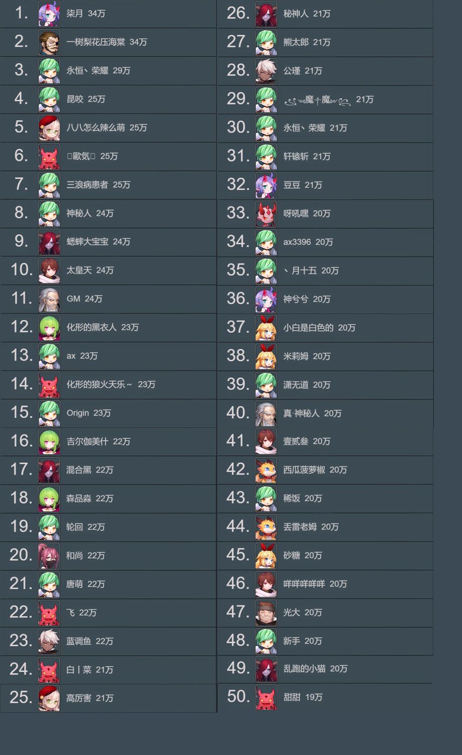 【活动】8月勇者令排行名单