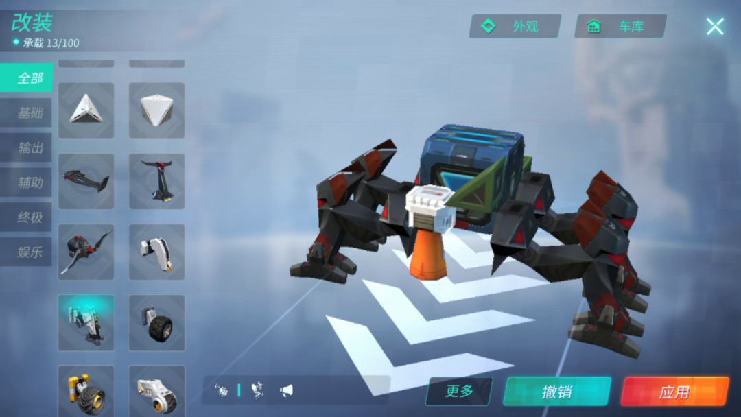 钩子磁爆穿云 车体是新捏的,磁爆位置和刀口基本不变 游击/对线车,车体内置三小喷,后置一大喷 刀口不行,也就欺负欺负少刀或没刀的,尽量别对刀 穿云钩子可以互换位置,逃生舱带一武器一大招和一喷 大招可以换,除了大盾蜂巢黑洞都可以带 2个指向型武器位2个非指向型武器位,不喜欢武器配置的可以自己换 喇叭是凑负载的,可以拿掉 多出来的负载可以换方块把盾顶出去一格,但会造成卡枪口 把喇叭和小腿拆了,再将一把