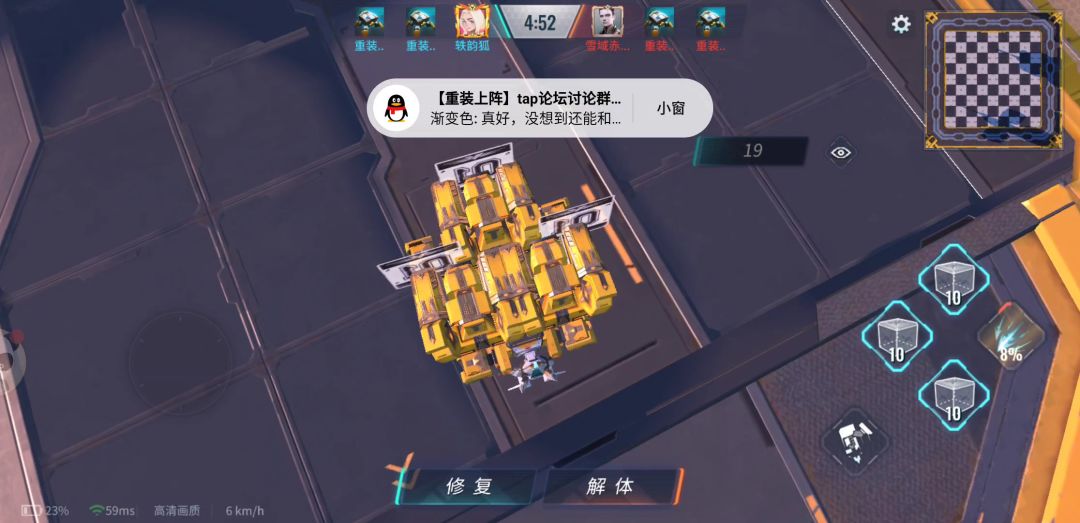 在在擂台上有一群酸鸡,他们专门跑到高台上去打人。这让许多玩家想破了头,都没有想出办法。 今天,我就来分享一下我的办法: 高台作为一般武器的火力盲点,就成为了某些人的打人专属位置。但是有那么几种武器就能克制他们。 1、导弹+炮台 导弹能够将敌人炸成小核心,而炮台是干啥啥不行,补核心第一名。可以利用这一特点,先用导弹将敌人炸成小核心,再将炮台建在高台上,轻松搞定。 2、迫击炮 迫击炮在现实中被誉为“曲