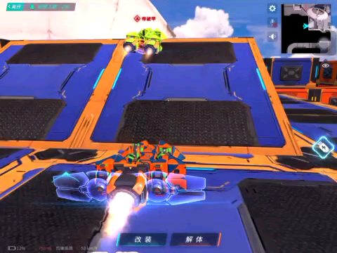 我是那个蓝蓝,当我在黄黄的空腔里修复后,我们就会鬼畜并飞起来,且不可控制方向 我就是辆普通的机枪车,黄黄是底下一个大平板,上面装了8个悬浮器 请无视这暴躁的BGM