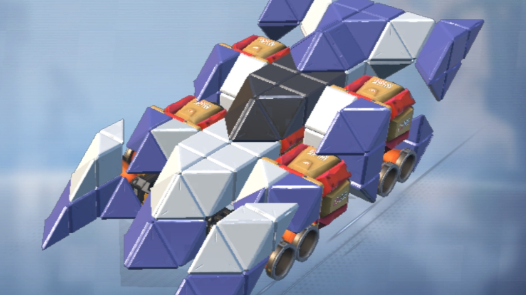 较低的地盘保证对核心的伤害,三个隐身接替,形成完美循环,隐身不断,后面四个加速视情况而定,可逃可战,也可拆去两个换成其他,如钩锁或终极武器,但低矮且较宽的车身在敌人较小巧的情况下稍显笨拙,转向不便,总得来说对萌新而言属于技术难度不大,易上手