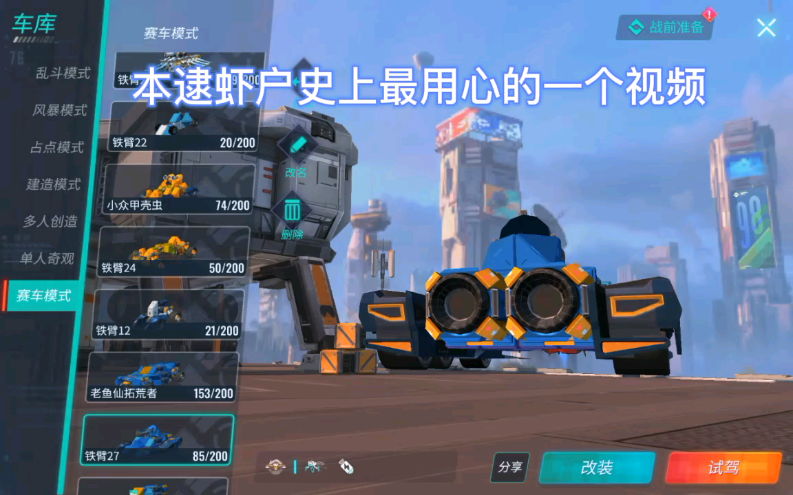 本视频用了近一个小时制作,这是我造的第一辆赛车,还有很多要改进的地方,不喜勿喷