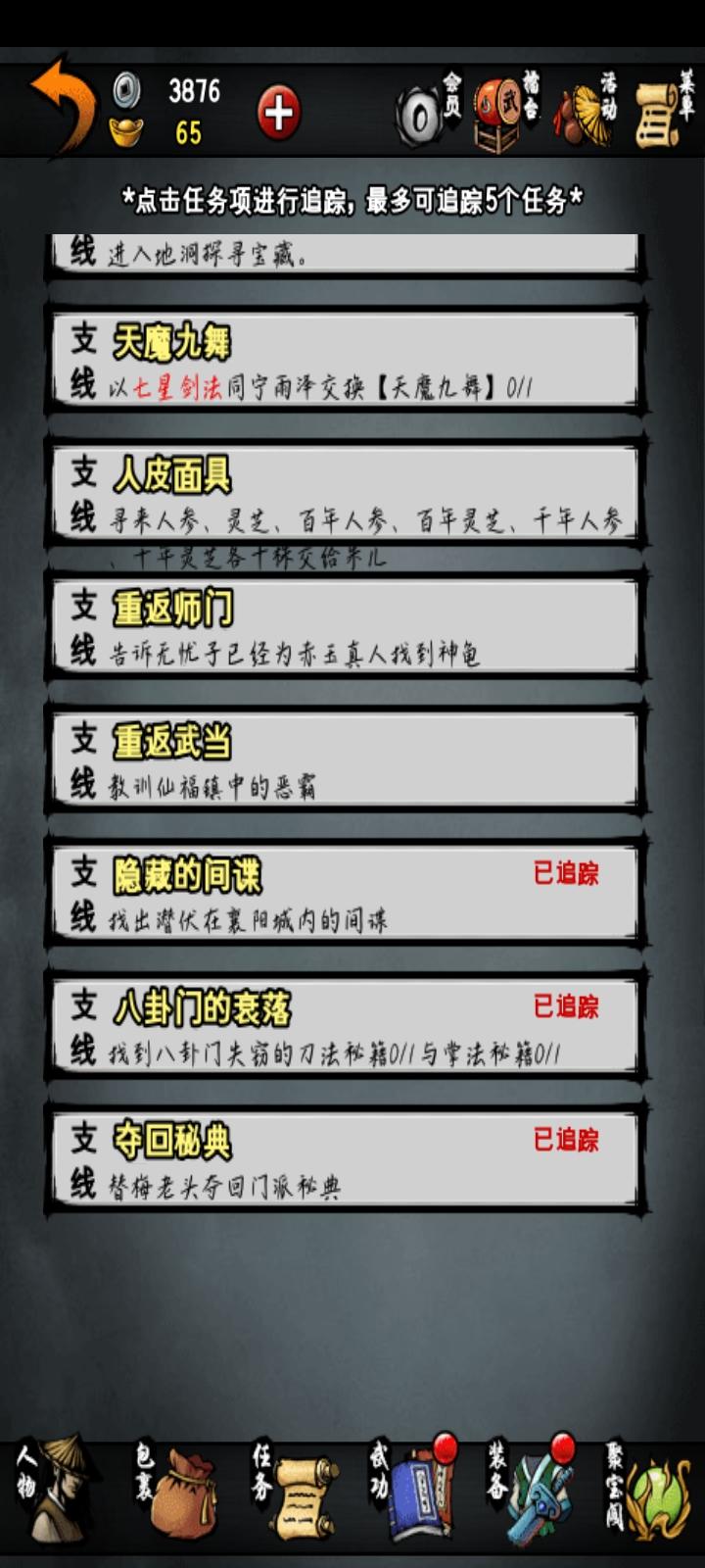 写一套全套的攻略就当是宴请16年时那个小男孩的武侠梦了好了废话不多说进去干货1.首先,开局上 官宦子弟:战斗时阅历获得增加5% 商贾巨富:增加5%的银两获得 武林世家:所需阅历减少10%(主角) 草根平民:战斗获得经验增加5% ( 只对主角有效) 2.人生目标盖世武功是九霄惊雷刀法绝世内功是莽枯神功,(任务难打)无双神兵是(沉寂)血爪,(好用不过很难弄)女主后宫莫声谷,男主后宫