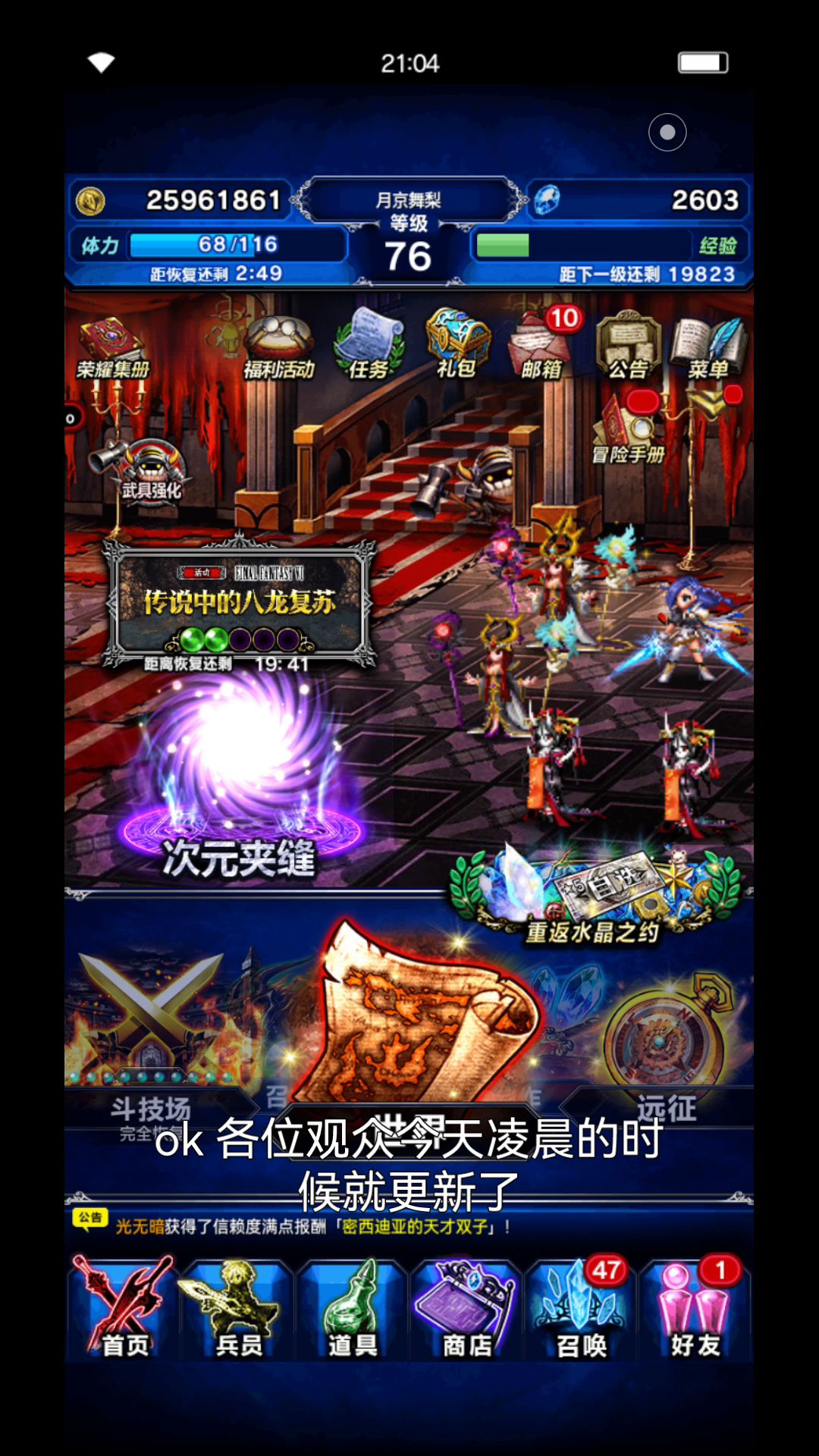 同时,莉尔娜在降临水晶冒险世界之前,为队长们带来了一些小礼物!~(第一波福利)