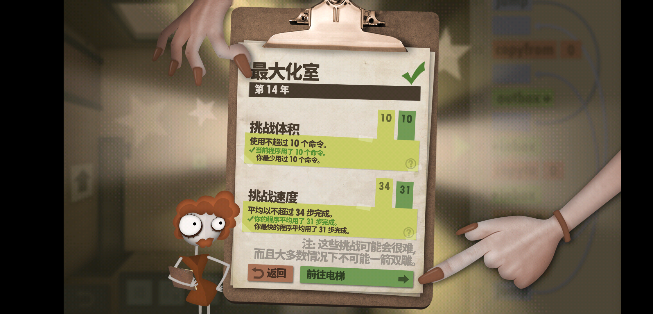 首先大概翻了一下以前的帖子,没有人发和我一样的技巧,因此在这里和大家分享一下。技巧就是重复,把一个程序重复两遍。大概如图这个技巧可以节省步数,但会增加命令数,且仅能用在需要使用jump的程序中。(帮助同样患有强迫症的大家快速达成第二个挑战)除此之外,在保护零行动之类的关卡可以将重复步骤结合这个是五个命令二十八步这个是七个命令二十五步大概就酱紫。
