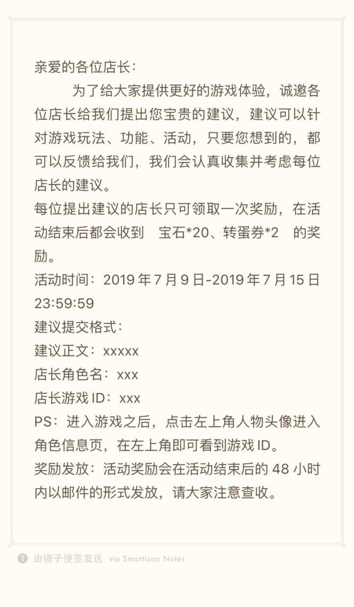 亲爱的各位店长大人:以下是8月13日活动预告,限定恋爱剧情、免费体力、限定服饰全都来啦~☆☆浪漫时光☆☆1.活动时间:2019年8月13日10点~2019年8月20日9点59分;2.活动奖励兑换期限至2019年8月20日9点59分;3.活动期间完成指定任务可以获得「活跃度」;4.「活跃度」达到指定数量,可以领取相应奖励;5.「活跃度」达到指定数量时,还可以分别获得绿玫瑰,可以在商城活