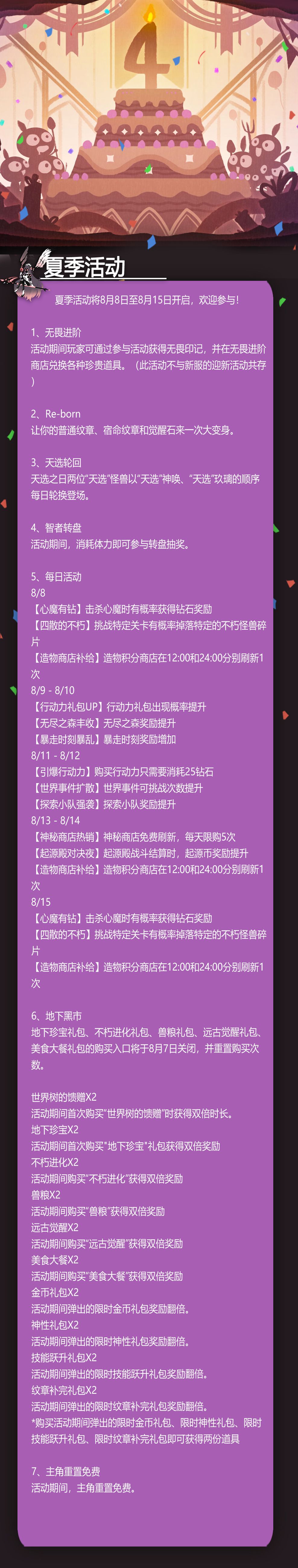 夏季活动将于8月8日至8月15日开启,欢迎参与!