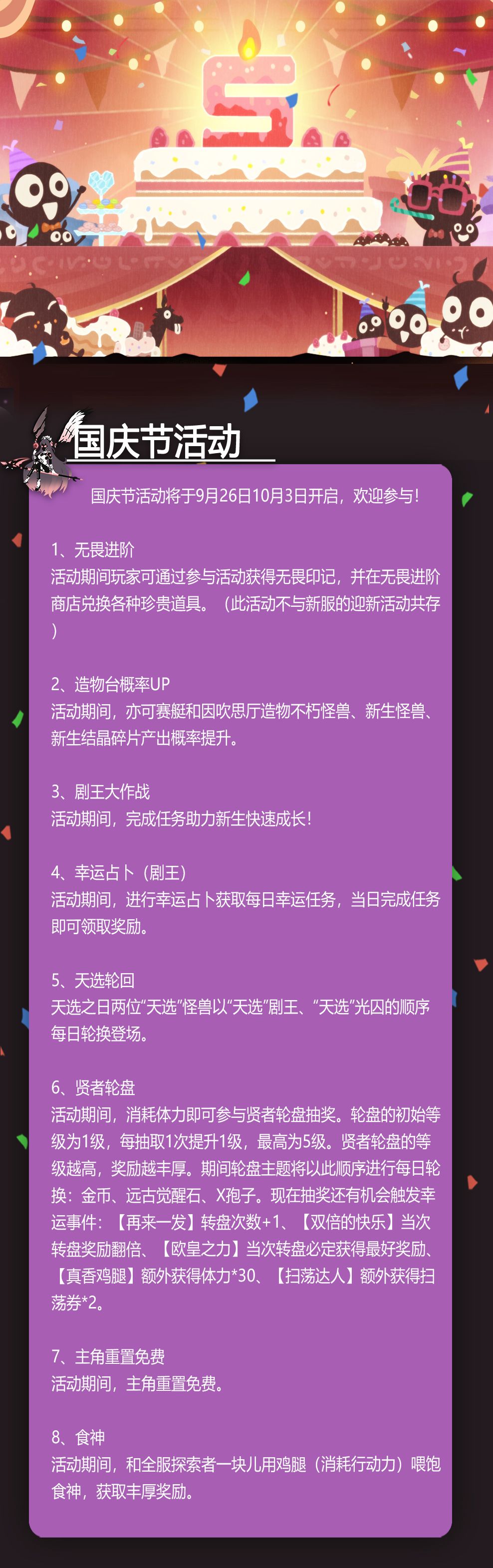 国庆节活动将于9月26日至10月3日开启,欢迎参与!