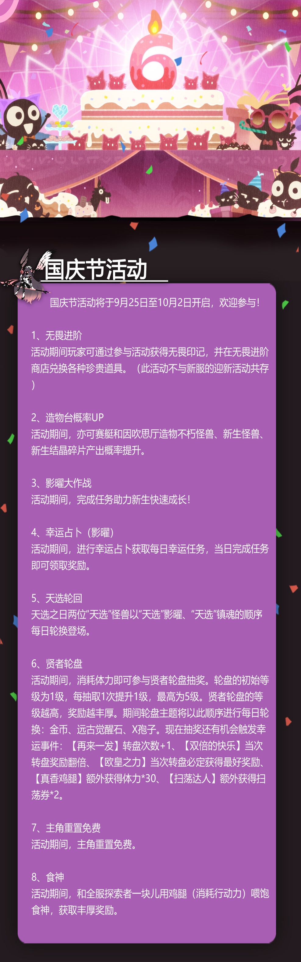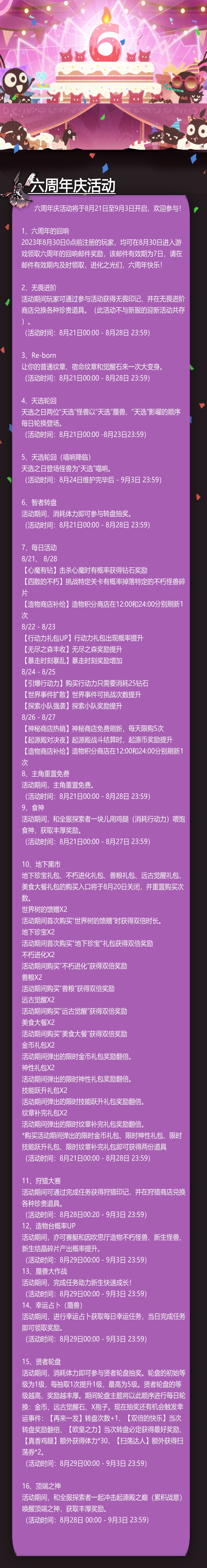 六周年庆活动将于8月21日至9月3日开启,欢迎参与!