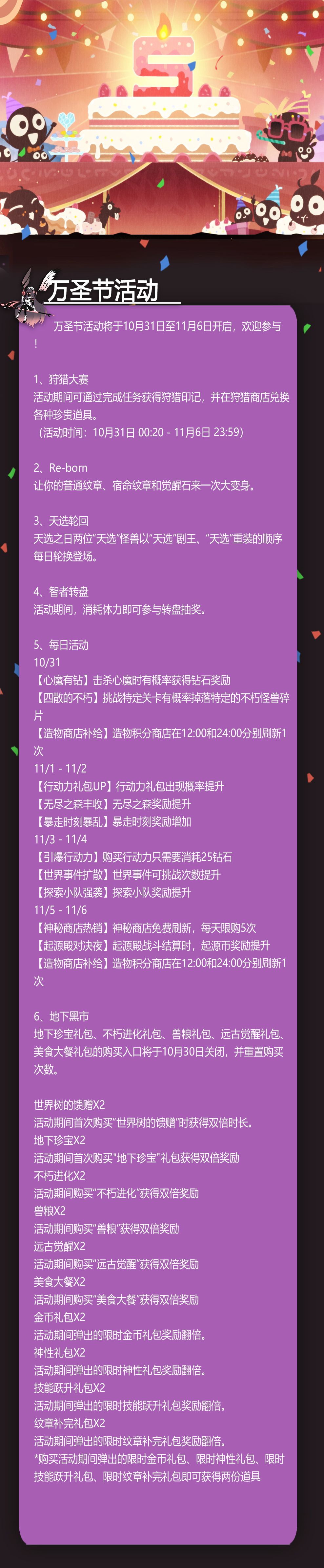 万圣节活动将于10月31日至11月6日开启,欢迎参与!
