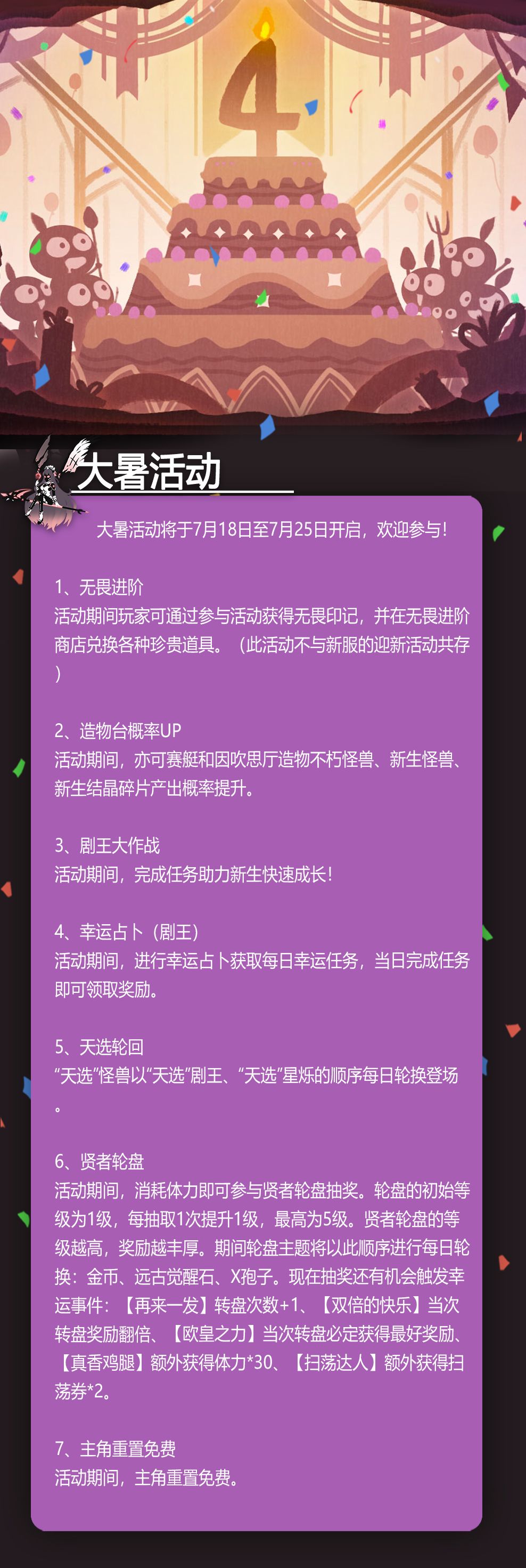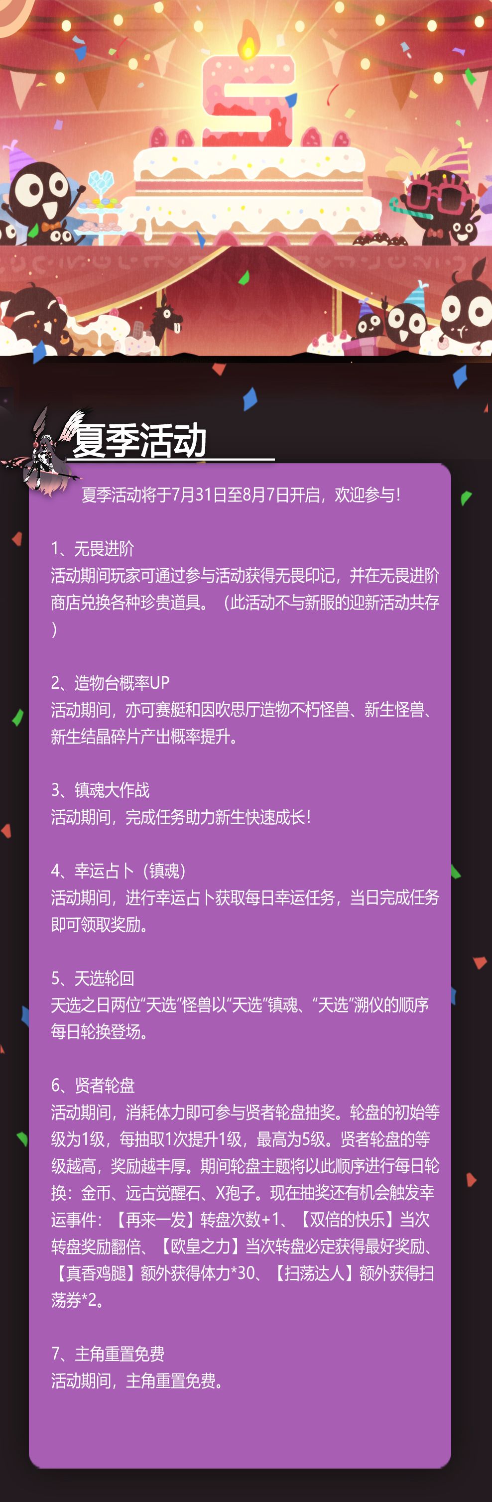 夏季活动将于7月31日至8月7日开启,欢迎参与!