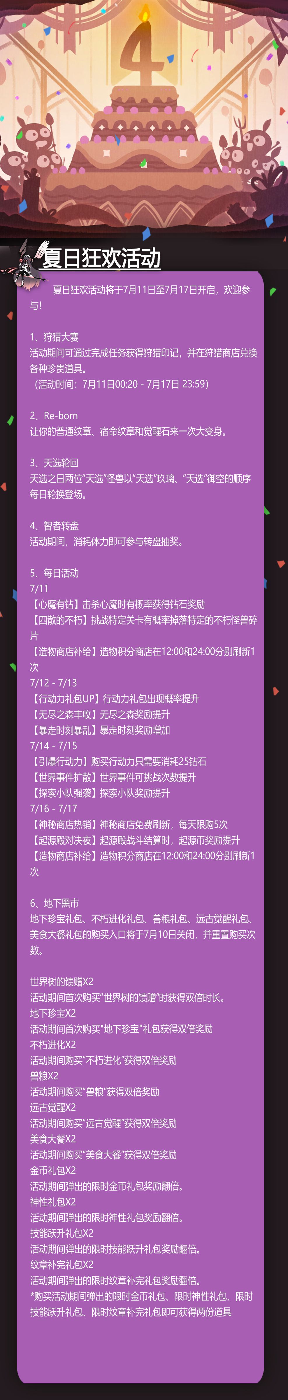 夏日狂欢活动将于7月11日至7月17日开启,欢迎参与!
