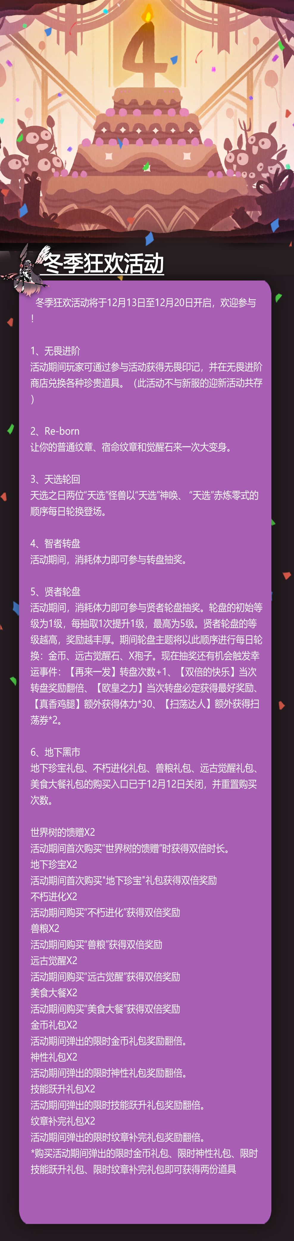 冬季狂欢活动将于12月13日至12月20日开启,欢迎参与!
