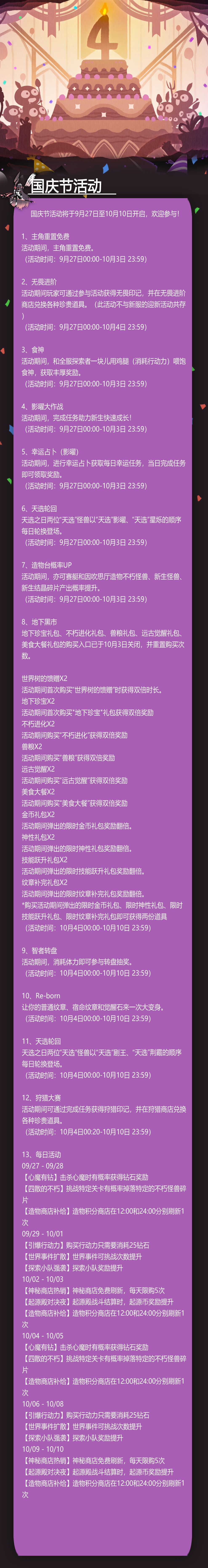 国庆节活动将于9月27日至10月10日开启,欢迎参与!