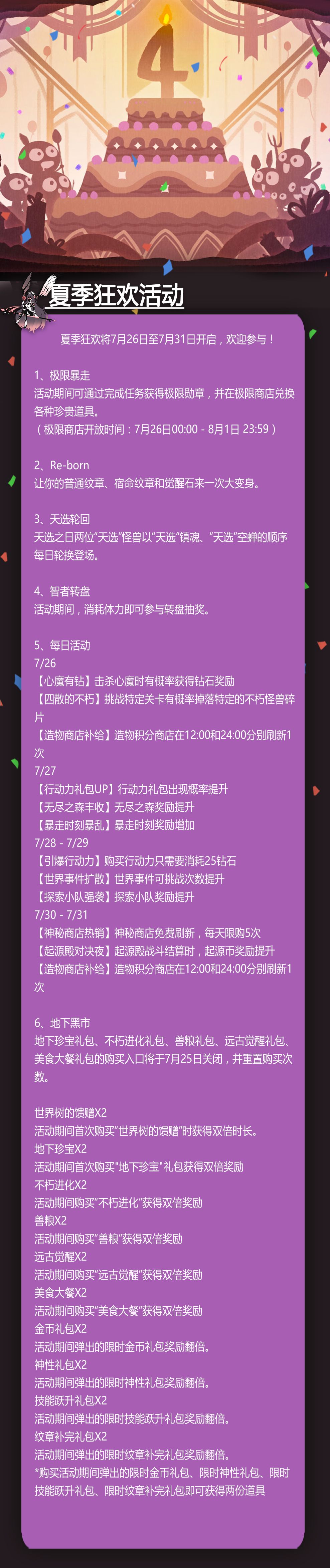 夏季狂欢活动将于7月26日至7月31日开启,欢迎参与!