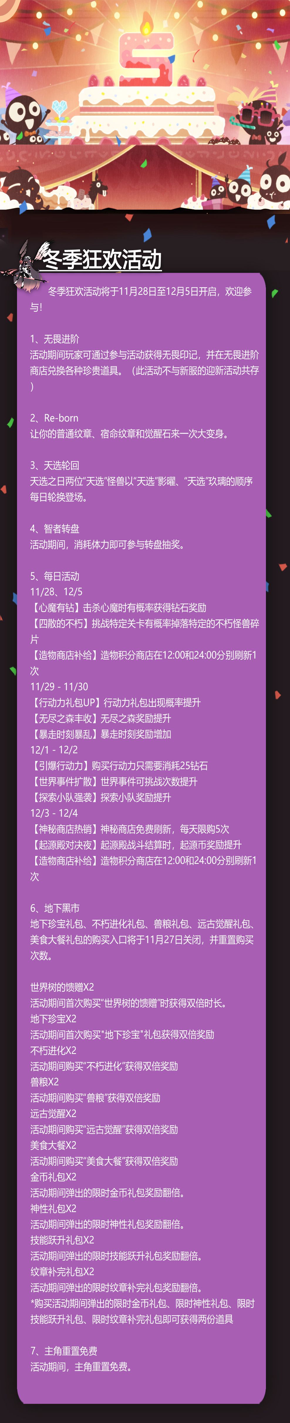 冬季狂欢活动将于11月28日至12月5日开启,欢迎参与!