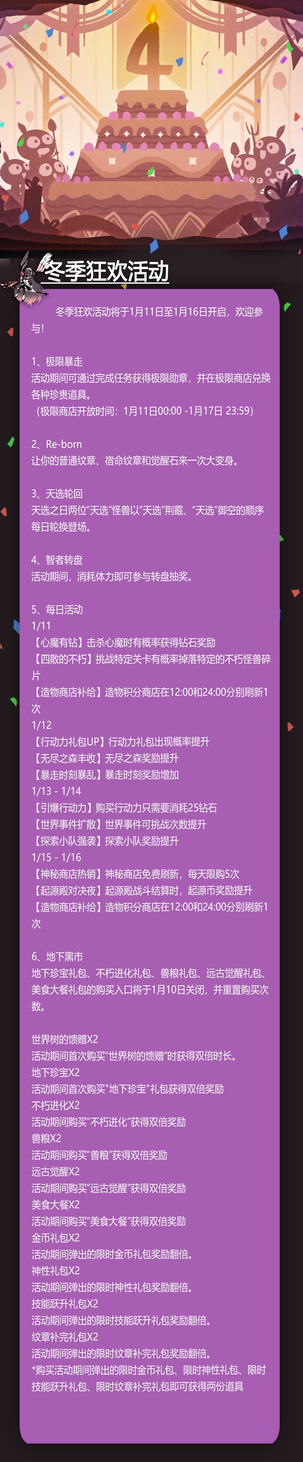 冬季狂欢活动将于1月11日至1月16日开启,欢迎参与!