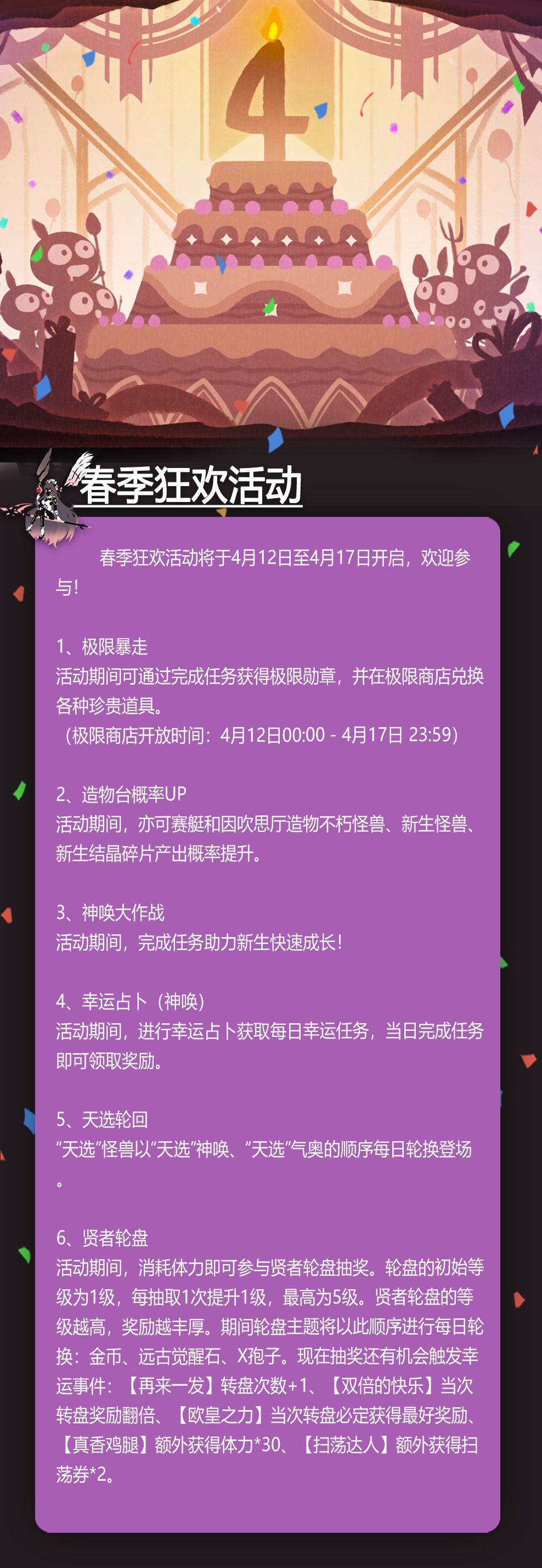 春季狂欢活动将于4月12日至4月17日开启,欢迎参与!