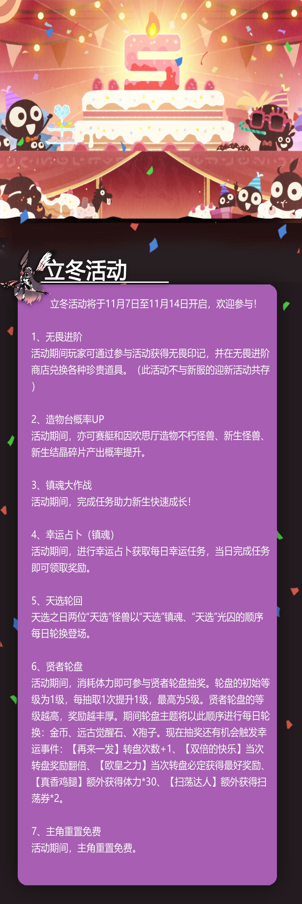 立冬活动将于11月7日至11月14日开启,欢迎参与!