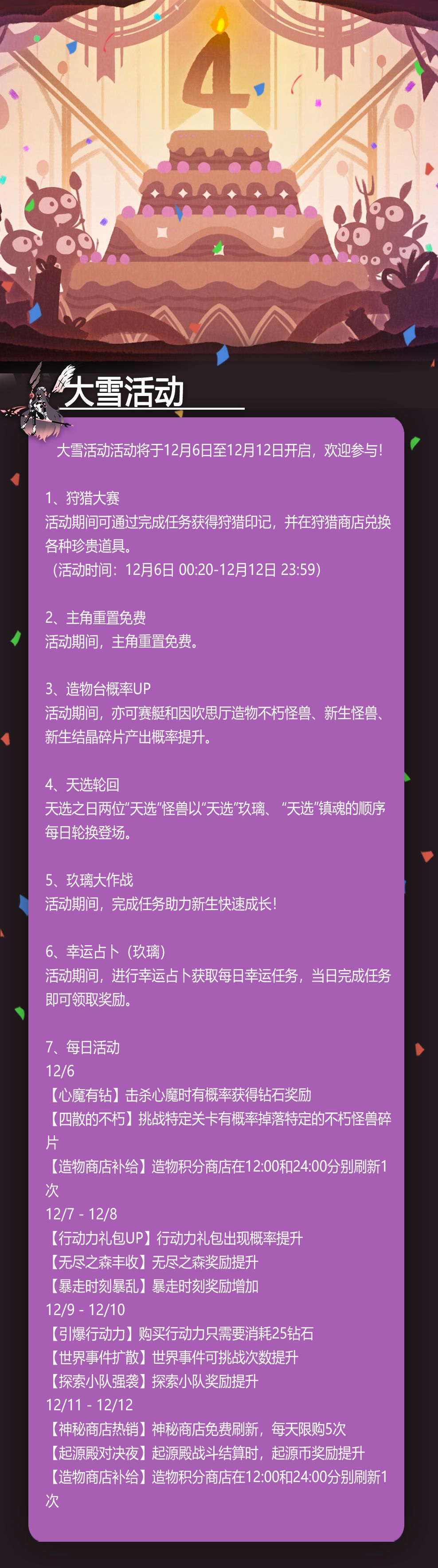 大雪活动将于12月6日至12月12日开启,欢迎参与!