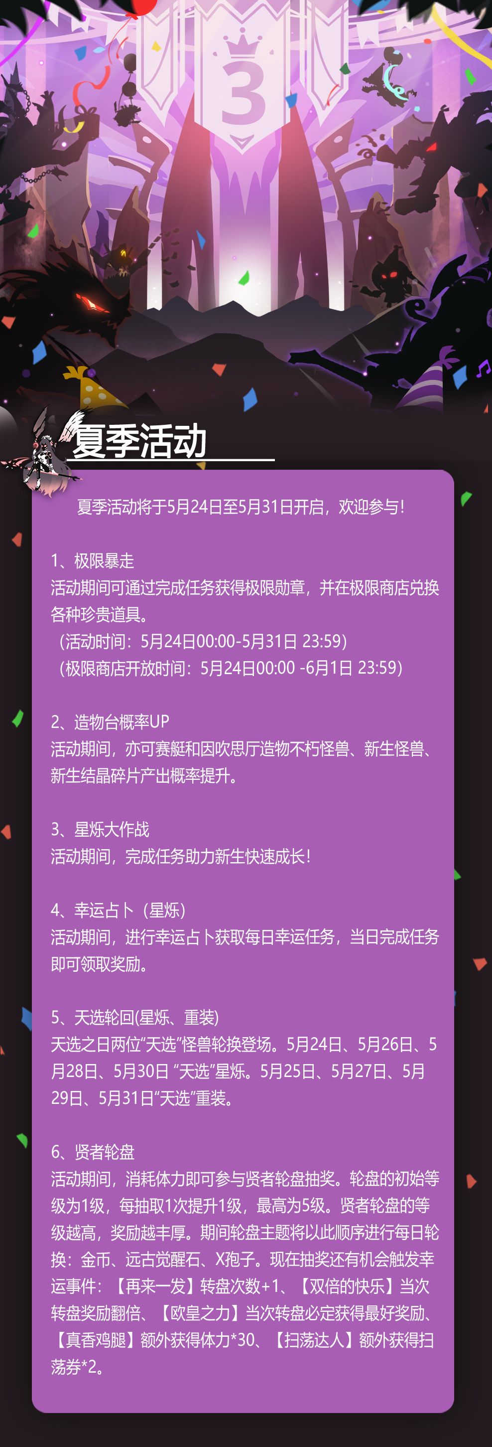 夏季活动将于5月24日至5月31日开启,欢迎参与!