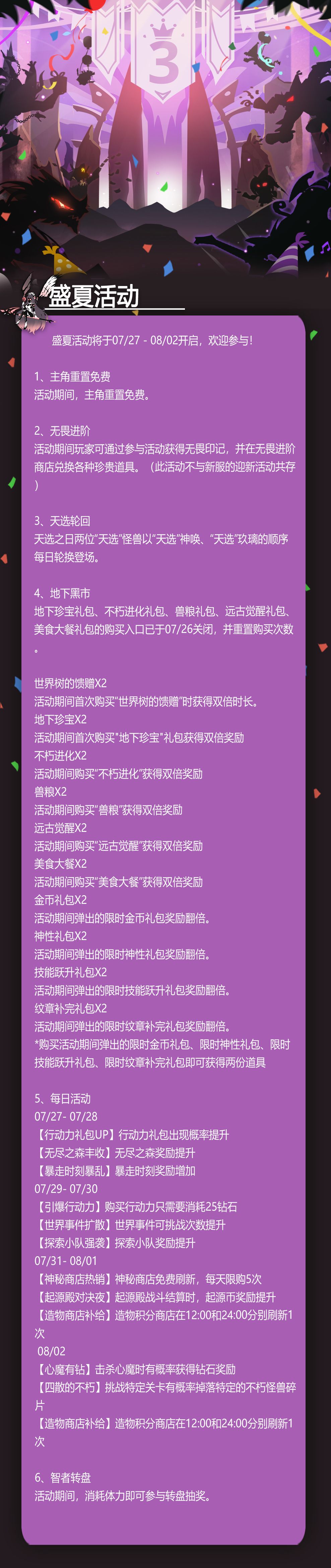 盛夏活动将于7月27日至8月2日开启,欢迎参与!