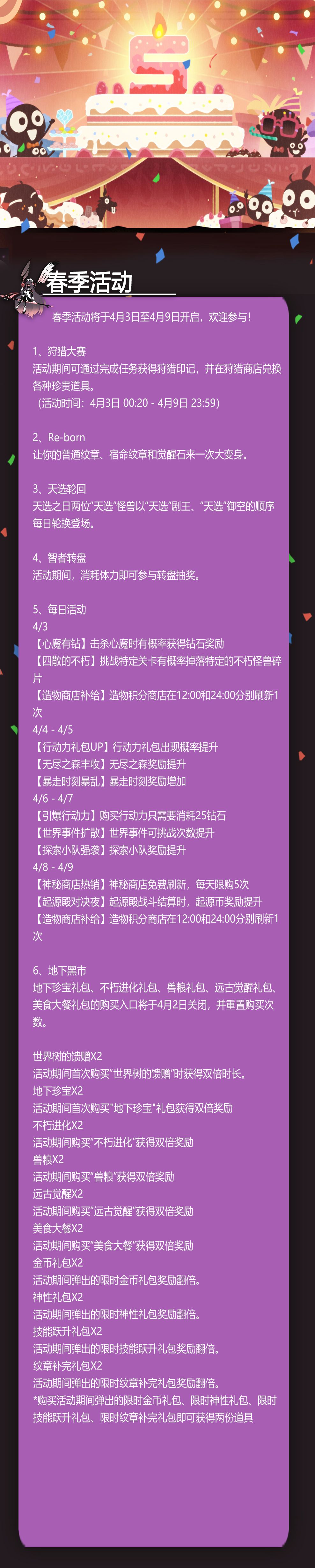 春季活动将于4月3日至4月9日开启,欢迎参与!