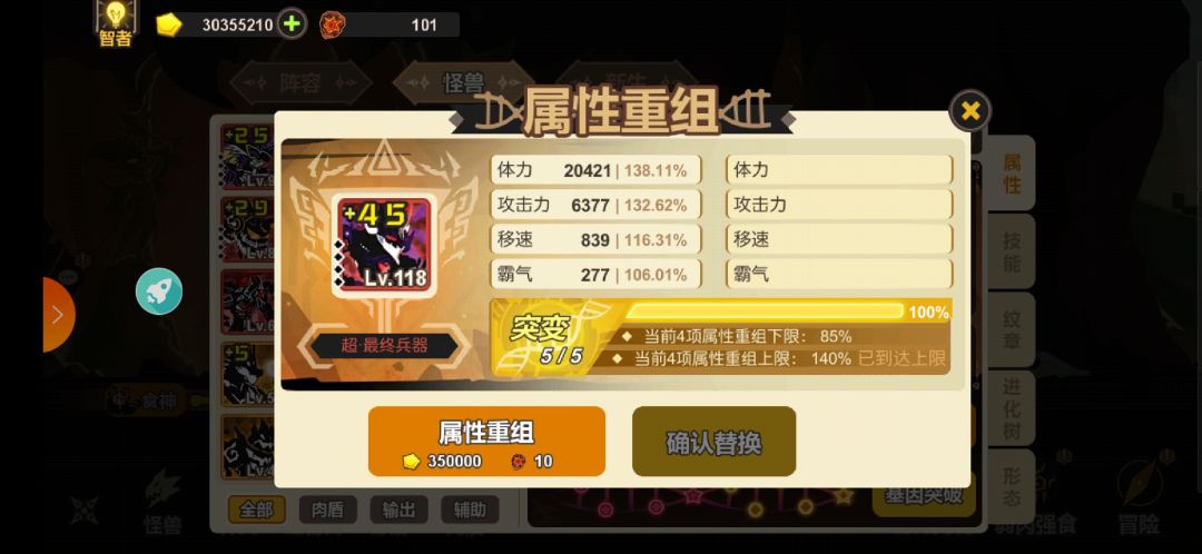 内测公测都玩到了快五十级,也摸索的差不多了,因为我两次开头都是混沌,所以先讲讲混沌的攻略吧,25级的时候进化战狂,纹章带庇佑或者加攻击的,宿命带嗜血,如果想战狂一路走到黑的话基因突破小基因就全叠加三十攻击的,大基因可以搞加四等级上限的快速进化到不朽,或者稳扎稳打,搞高于百分之七十五和低于百分之四十的血量加两百攻击的,还有那个加百分之十纹章效果的,最好前期基因突破都给主角怪兽,先搞到+15再说。 如