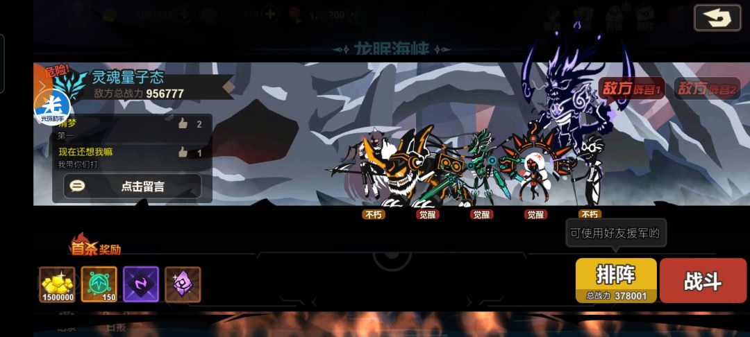 96万战力,再加上难缠的阵容,确实是一大难题。如图 不过在我的思考下,想到了一个阵容。 御星日魅气,在我不懈的尝试下,发现图一可以保证全员过关并且还可以攒一定的神灵。然后到了图二!!! 注意,图二有几个注意的点,稳固净化乔峰,重生莎士比亚,加玖璃。 虽然魅妆的护罩在图一没有触发,但是到了图二,挡不住玖璃的子弹! 所以要等御空的风刮起来,白虎点杀莎士比亚,并且之后点杀玖璃。这只是我的猜想。我个人还没