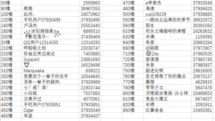 欢欢乐乐底春节假期结束了,上班第一天呜呜祖拉赶紧就来帮大家开奖了~!因为很多无法排除的原因,导致一些楼层都不见了,所以可能有的小伙伴没有能顺利参加活动,乌拉在这里只能给大家道歉了(╥_╥)(吞楼这个东西我也没办法解决哭了)最后的最后,符合规则的盖楼活动玩家就在此公布啦~!还请大家尽快联系Q群中的客服小姐姐领取游戏兑换码哦~100W下载兑换码获奖名单其中100楼,200楼500楼8