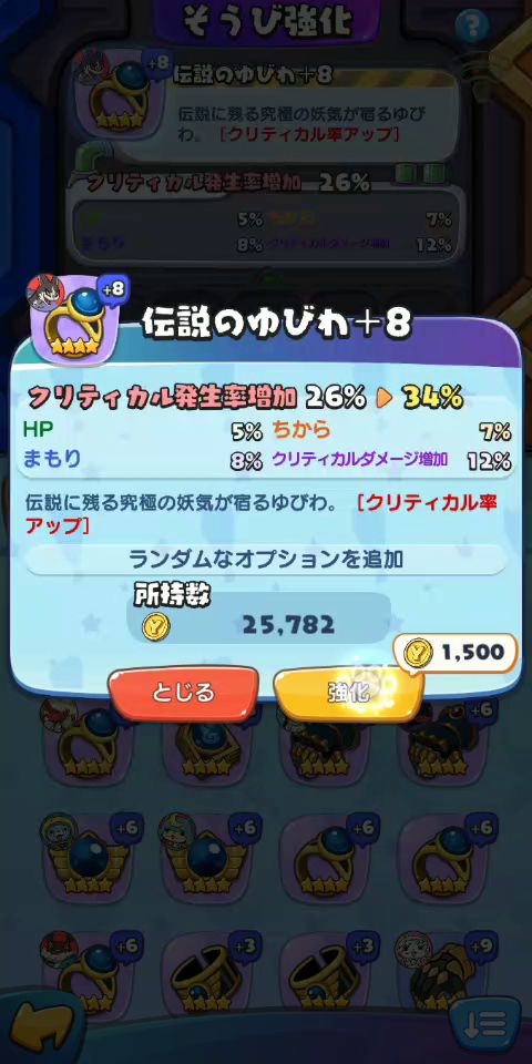 真心砸了我不少金币。。砸满5只材料还是失败,没钱了加9实在烧钱。。有些人喜欢刷暴击,我还是推荐刷猪副本掉加攻击的武器,然后砸6看看有没有8点以上的暴击,没有就去当材料上8和9,为什么不推荐刷暴击呢?因为以后人手一只忍者猫,出场直接加40点暴击。还有有些英雄出场也加暴击,不需要那么多,况且暴击还是看脸,20暴击和40暴击差别真心不大,除非堆到80点,不过要大量加9紫戒指砸满加34点暴击,再加忍者猫出