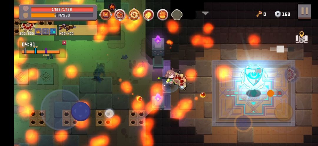 满屏的火...前面boss还能躲躲,后面眼睛花的小怪的弹幕都分不太清了,因为才玩了半个小时的样子连自己召唤物都躲了一会..元气我的英雄肉鸽啥的都有玩来着,我菜我也承认..但是这个火也没伤害呀属实没看懂..😭
