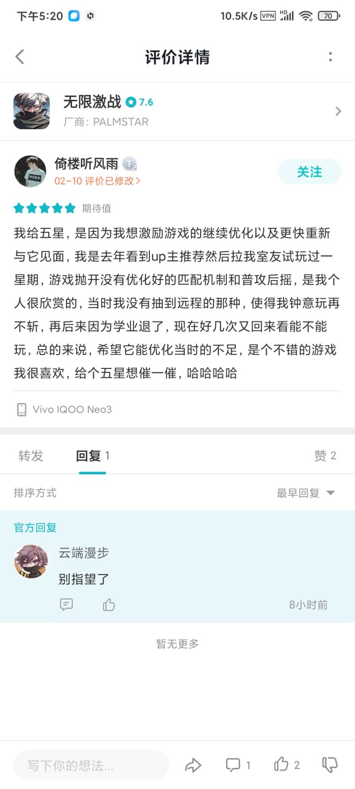 整理自己关注的游戏时无意中翻到了,仔细想了想好像是前几年这游戏测试时随手下来玩的,当时感觉还可以便关注了一波,现在看来似乎没有活到正式服,心有感慨,特此前来扫墓上香。另外如果诈尸的话恳请广大扫墓的道友滴滴我,不胜感激。