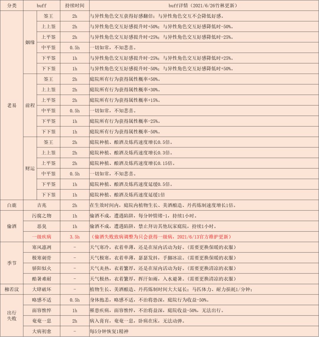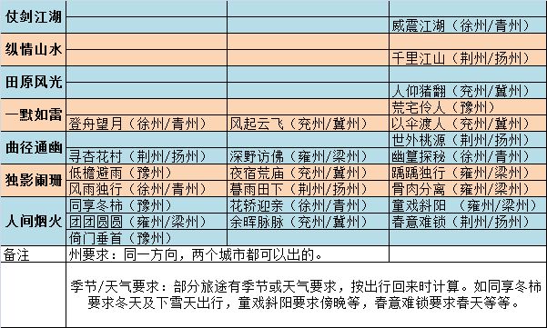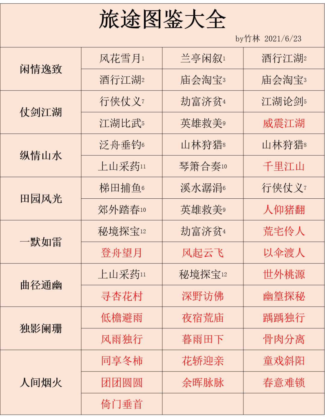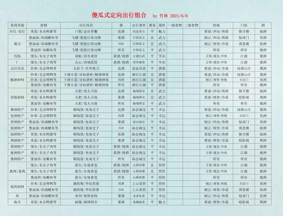 【竹林】定向出行及出行属性表!(食物/酒/用具/宜平忌/性格/门派/声望/县城等级/地方志兑换)2021/9/14更新