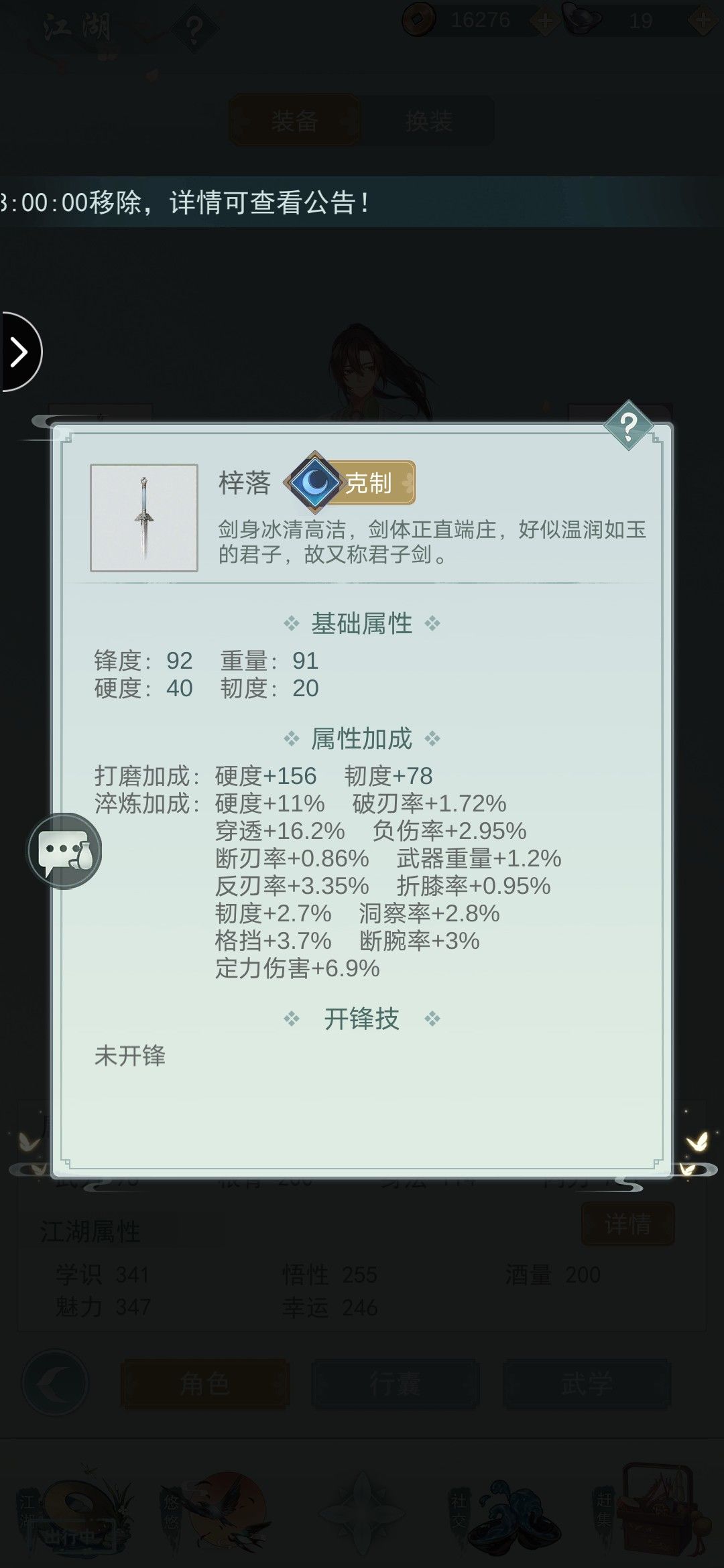 本人是玩惊涛的,套路是枫叶涛,五阶癸水,四阶悬河,四阶御剑 武器是无痕 一、无锋新锁月的压制力(即使练度比你低很多,攻击力少一百,各属性都差一截) 二、问酒也是yyds 这个跟我差不多属性,但是可以秒杀我